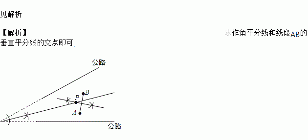 “西气东输”是造福子孙后代的创世纪工程。现有两条高速公路和A. B两个城镇(如图),准备建立一个燃气中心站P,使中心站到两条公路距离相等,并且到两个城镇距离相等,请你画出中心站位置。