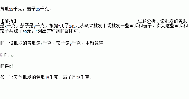 当天他卖完这些黄瓜和茄子共赚了90元,这天他批发的黄瓜和茄子分别是多少千克?