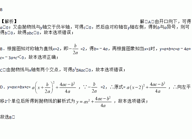 C. b2-4ac≥0 D. 将该函数图象向左平移2个单位后所得到抛物线的解析式为y=ax2+c
