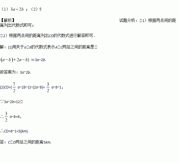 (1) 用关于a、b的代数式表示A、C两站之间的距离是 ;(最后结果需化简)
