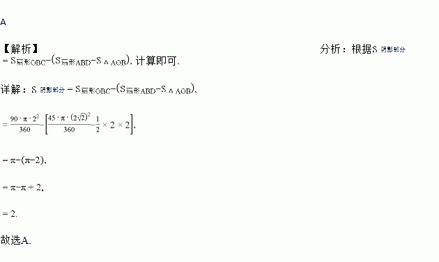 如图,在Rt△ABO中,∠AOB=90°,AO=BO=2,以O为圆心,AO为半径作半圆,以A为圆心,AB为半径作弧BD,则图中阴影部分的面积为( )