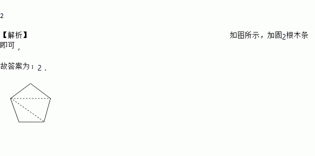小明用5根木条钉了一个五边形框架,发现它很容易变形,为了使这个框架不变形,他至少要钉________ 根木条加固.