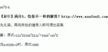 先化简,再求值:3(4a2﹣5ab3)﹣4(3a2﹣4ab3),其中a=﹣1,b=2.
