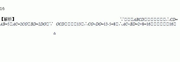 如图,□ABCD的对角线交于点O,且AB=5,△OCD的周长为13,则□ABCD的两条对角线长度之和为________.