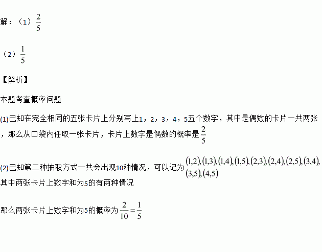 (题文)在完全相同的五张卡片上分别写上1,2,3,4,5五个数字后,装入一个不透明的口袋内搅匀.