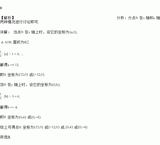 已知坐标系中有一点A(-3,1),点B在坐标轴上,若△AOB的面积为6,则点B的坐标不是下面的( )