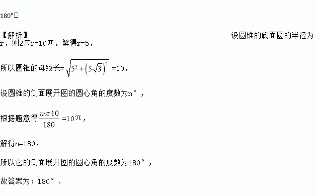 底面周长为10πcm,高为5的圆锥的侧面张开图的圆心角度数_____.