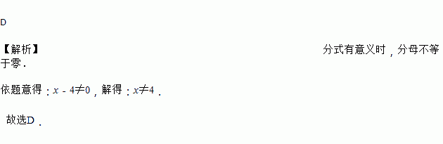A. x>4 B. x=4 C. x<4 D. x≠4