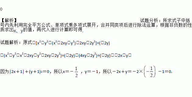 先化简,再求值:已知x,y满足|2x+1|+(y+1)2=0,求代数式[(x2+y2)-(x-y)2+2y(x-y)]÷(-2y)的值.