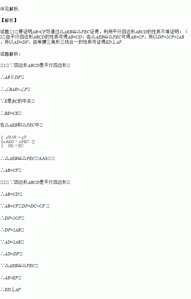 如图,在?ABCD中,E是BC的中点,连接AE并延长交DC的延长线于点F.