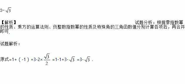 计算:(-1)0+(-1)2015+()-1-2sin60°