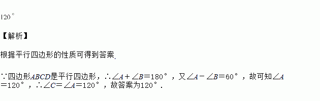 在平行四边形ABCD中,已知∠A﹣∠B=60°,则∠C=_____.