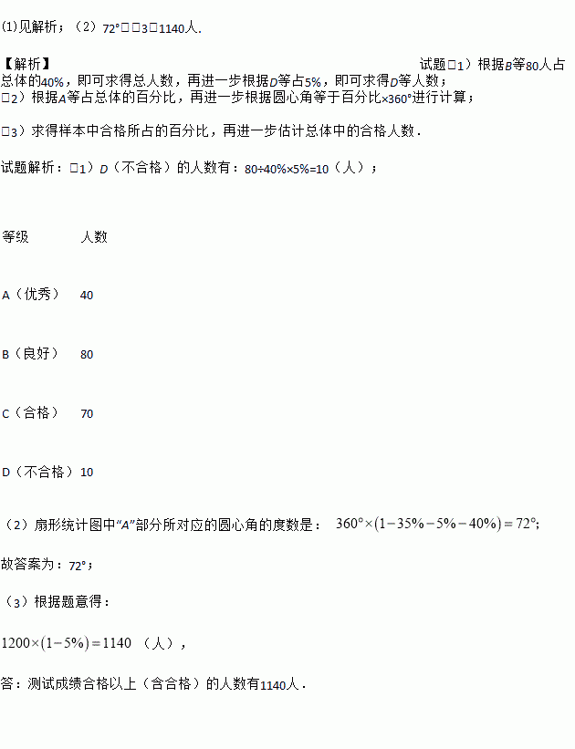 (3)该校八年级共有1200名学生参加了身体素质测试,试估计测试成绩合格以上(含合格)的人数.