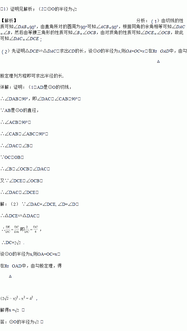 (1)求证:∠DAC=∠DCE;