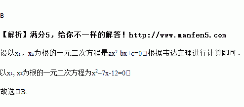 A. x2﹣7x+12=0 B. x2﹣7x﹣12=0 C. x2+7x﹣12=0 D. x2+7x+12=0