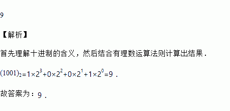 按此方式,将二进制数(1001)2换算成十进制数的结果是________.(注:20=1)