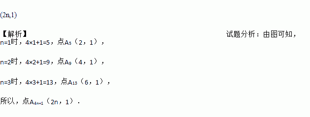 如图所示,在平面直角坐标系中,一动点从原点O出发,按向上,向右,向下,向右的方向不断地移动,每移动一个单位,得到点A1(0,1),A2(1,1),A3(1,0),A4(2,0),…,那么点A4n+1(n为自然数)的坐标为________(用n表示).