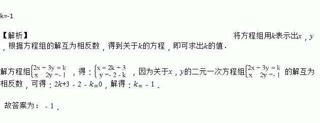 已知关于的二元一次方程组的解互为相反数,求的值。
