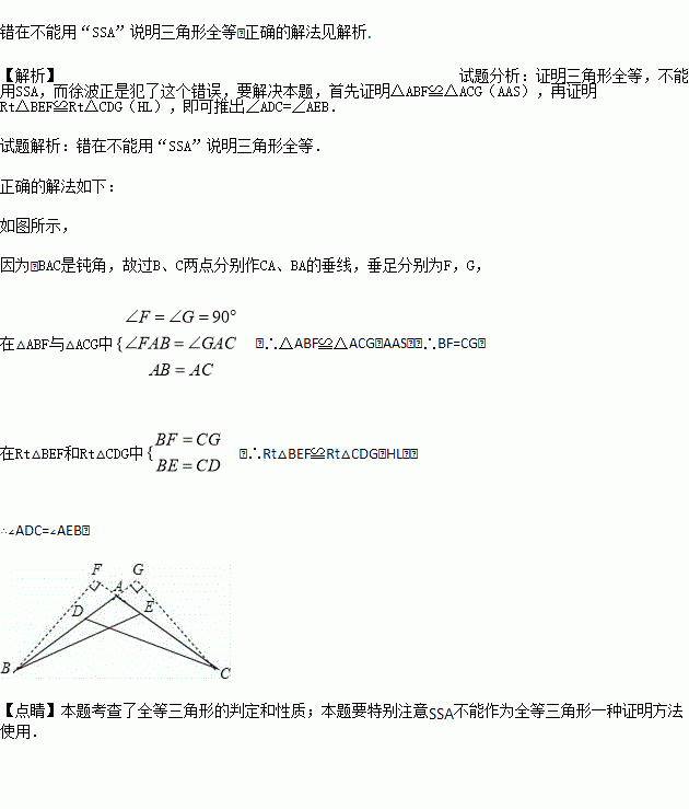 所以△ABE≌△ACD,所以∠ADC=∠AEB.