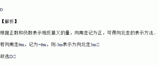 若向南走6m,记为+6m,则﹣3m表示为( )