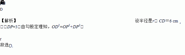 如图所示,⊙O的直径AB垂直弦CD于P,且P是半径OB的中点,CD=6 cm,则直径AB的长是 ( )