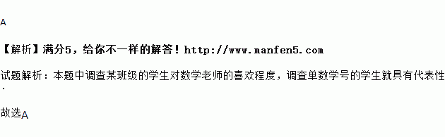 调查某班级的学生对数学老师的喜欢程度,下列最具有代表性的样本是( )