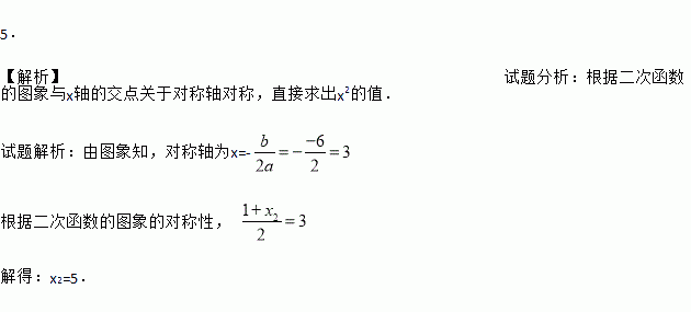 如图,二次函数y=x2-6x+n的部分图象如图所示,若关于x的一元二次方程x2-6x+n=0的一个解为x1=1,则另一个解x2= ___________.
