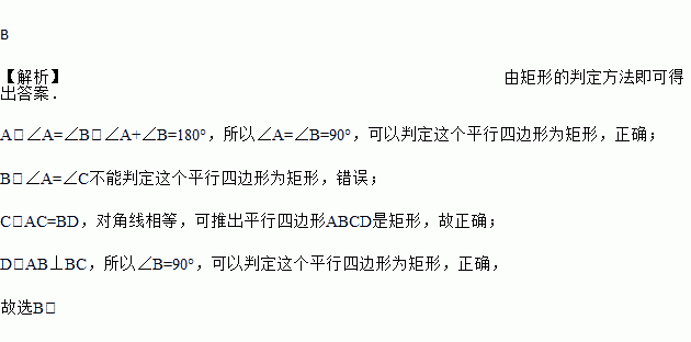 已知平行四边形ABCD,下列条件中,不能判定这个平行四边形为矩形的是( )