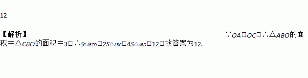 如图,在?ABCD中,两条对角线AC,BD相交于点O,若△ABO的面积是3,则?ABCD的面积为________.