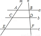 如图,已知直线a∥b∥c,直线m、n与直线a、b、c分别交于点A、C、E、B、D、F,AC=4,CE=6,BD=3,则BF=( )