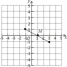 ∵点(-1,1)关于M(1,0)中心对称的点的坐标为(3,-1),