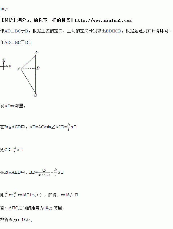 )nmile处,则海岛A,C之间的距离为______nmile.