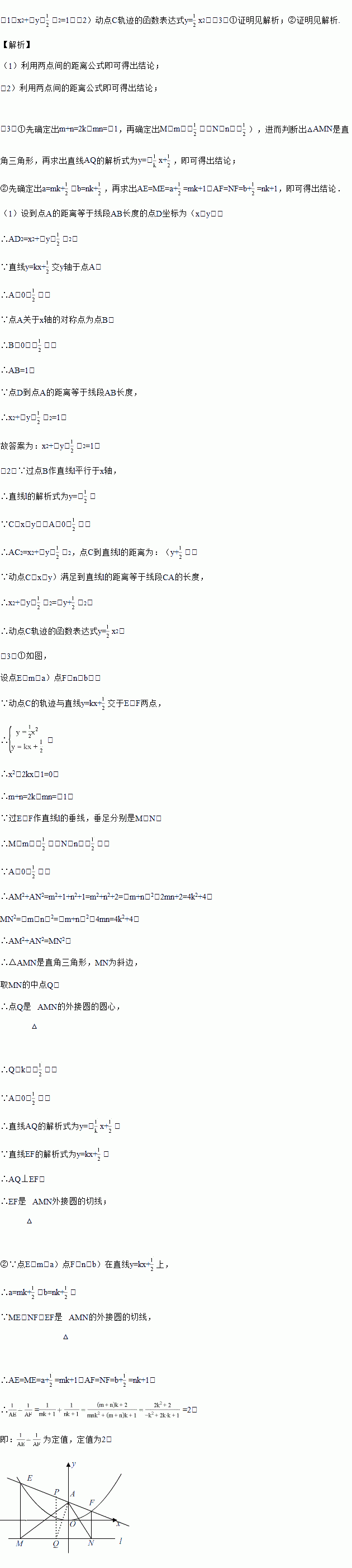(2)若动点C(x,y)满足到直线l的距离等于线段CA的长度,求动点C轨迹的函数表达式;