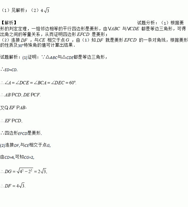 如图△ABC与△CDE都是等边三角形,点E、F分别在AC、BC上,且EF∥AB.