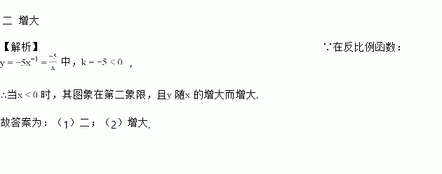 已知反比例函数y=-5x-1,当x<0时,它的图象的这一支在第__象限,y随x的增大而_____.