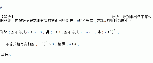 若关于x的不等式组有实数解,则a的取值范围是( )