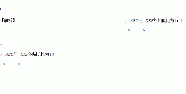 △ABC与△DEF的相似比为1:4,则△ABC与△DEF的周长比为( )