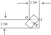 分析:把平板车一长边的中点固定于拐角O点,长边中点O到另一边顶点A的距离OA,到对边的距离OB=1m,则AB=2.2m÷2=1.1,利用勾股定理计算出长边中点O到另一边顶点A的距离OA即可判断能否推过直角走廊.