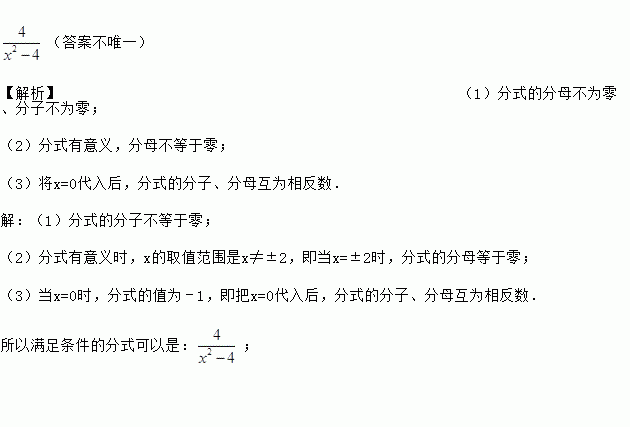 (3)当x=0时,分式的值为-1.