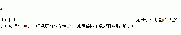 A 【解析】试题分析:将点P代入解析式可得:a=1,即函数解析式为y=,则羡慕四个点只有A符合解析式.