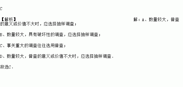 C.调查乘坐飞机的旅客是否携带了危禁物品 D.调查我市市民对伦敦奥运会吉祥物的知晓率