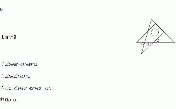 将一副直角三角扳如图放置,使含30角的三角板的直角边和含45角的三角扳的一条直角边重合,则∠1的度数为( )