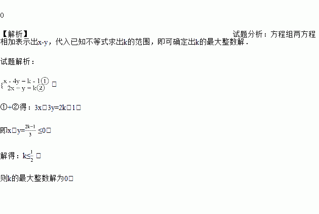 已知关于x,y的方程组满足x﹣y≤0,求k的最大整数值.