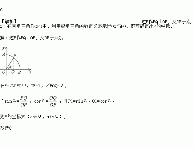 上一点(不与A,B重合),连接OP,设∠POB=α,则点P的坐标是( )