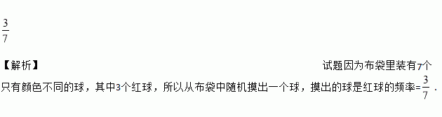 一个不透明的布袋里装有7个只有颜色不同的球,其中3个红球,4个白球,从布袋中随机摸出一个球,摸出的球是红球的概率是_______.