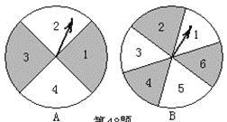 如图,有两个可以自由转动的均匀转盘A、B,转盘A被均匀地分成4等份,每份分别标上1、2、3、4四个数字;转盘B被均匀地分成6等份,每份分别标上1、2、3、4、5、6六个数字。有人为甲、乙两人设计了一个游戏,其规则如下: