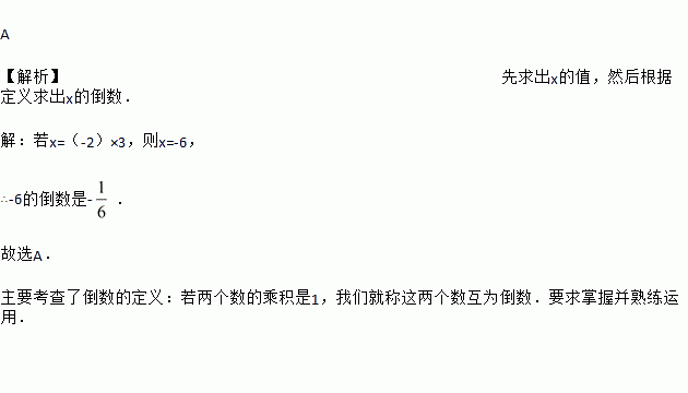若x = (-2)×3,则x的倒数是 ( )