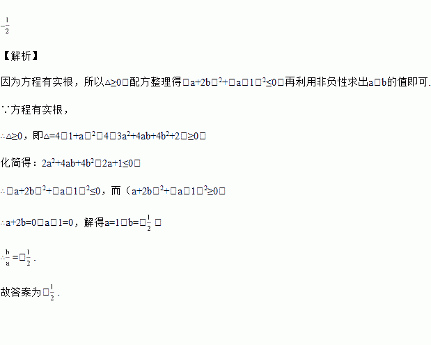 若方程x2+2(1+a)x+3a2+4ab+4b2+2=0有实根,则=_____.