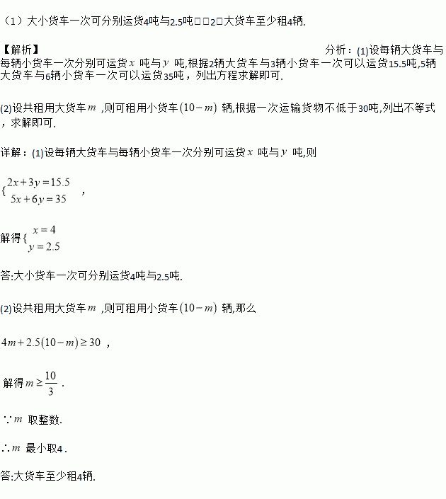 有大小两种货车,2辆大货车与3辆小货车一次可以运货15.5吨,5辆大货车与6辆小货车一次可以运货35吨.