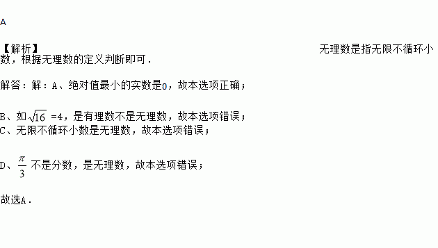 A. 绝对值最小的实数是0 B. 带根号的都是无理数